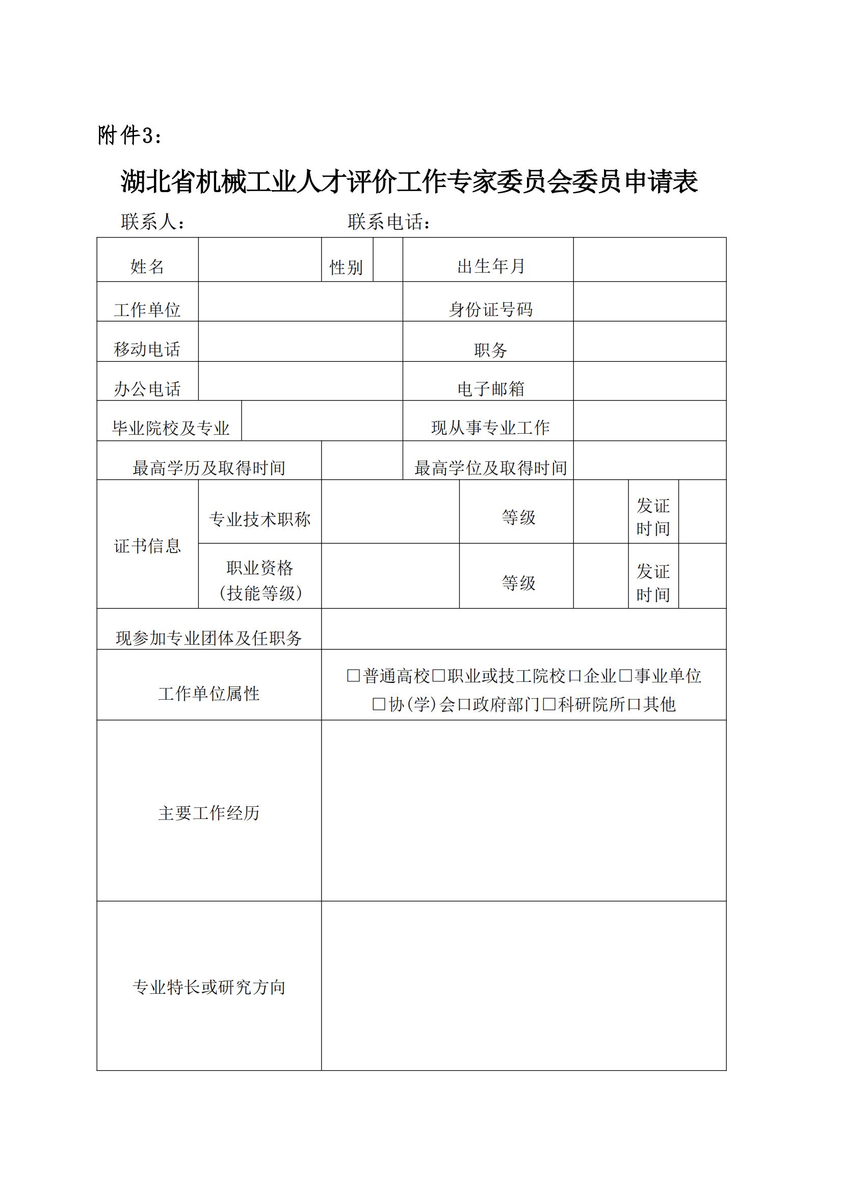 關(guān)于組建湖北省機(jī)械工業(yè)人才評(píng)價(jià)專家委員會(huì)的通知