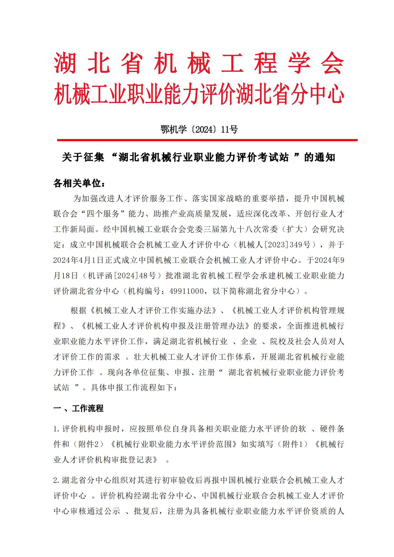 關(guān)于征集“湖北省機(jī)械行業(yè)職業(yè)能力評價(jià)考試站”的通知